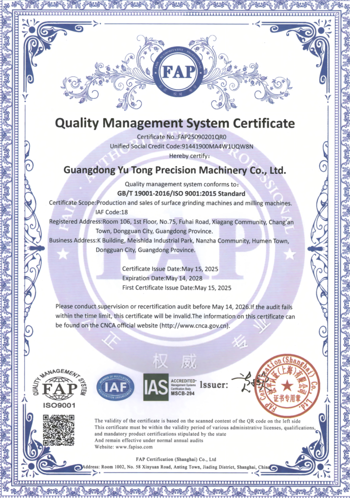 Guangdong Yutong Precision Machinery Co., Ltd. is a leading enterprise in China’s precision grinding machine industry, specializing in R&D, production and sales of precision machinery equipment. With technology innovation as the core and craftsmanship as the pursuit, we are committed to building a world-class Chinese precision machinery brand.
